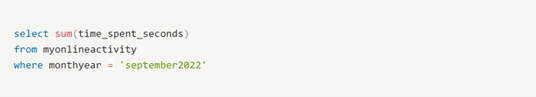 Q: "Hey, data. Can you tell me how much time I spent online in September?"